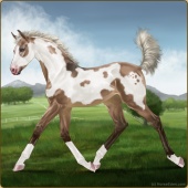 Name: ෆ ZzToRnP1 EEEAge: 8 Mare Color: Silver Mahogany Bay Roan Tobiano Varnish Appaloosa Breed: Irish Sport Horse Foal Rating: E/E/E |  |