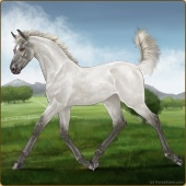 Name: ꋊꇙ AttentionAge: 2 Gelding Color: Silver Grullo Splash White Breed: Irish Sport Horse Foal Rating: P/E/E Bravery Rating: Sub-Par |  |