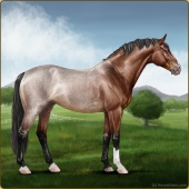 Name: ASDae X Venet 191Age: 8 Stallion Color: Light Bay Roan Dun Frost Appaloosa Breed: Sport Horse Foal Rating: W/E/E |  |