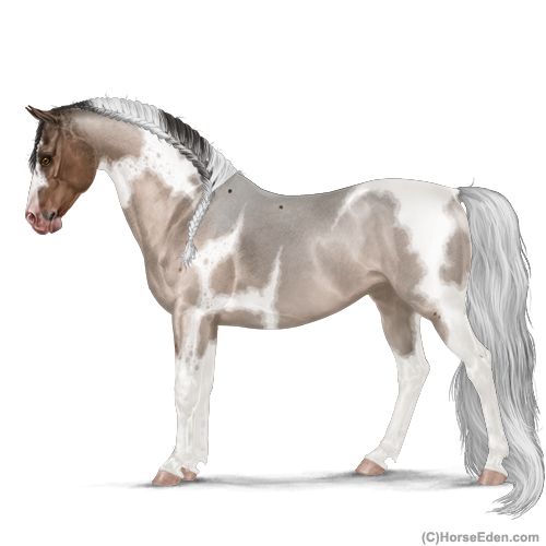 Color: Mahogany Bay Roan Dun Tobiano Splash White