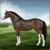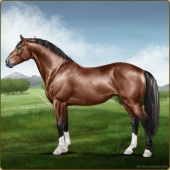 Name: Gegra NAge: 6 Mare Color: Seal Brown Dun Sabino Breed: Irish Sport Horse Foal Rating: E/E/E |  |