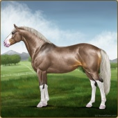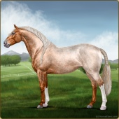 Name: Heart of Champions EEEAge: 4 Stallion Color: Flaxen Red Roan Dun Sabino Breed: Irish Sport Horse Foal Rating: E/E/E For Breeding! |  |