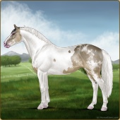 Name: Ginetta N (1/2)Age: 6 Mare Color: Silver Brown Dunskin Roan Sabino Varnish Blanket Appaloosa Breed: Irish Sport Horse Foal Rating: E/P/E |  |