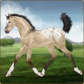 Name: Rhavenwood Wylde EEPAge: 1 Filly Color: Silver Dunskin Sabino Varnish Appaloosa Breed: Irish Sport Horse Foal Rating: E/E/P |  |