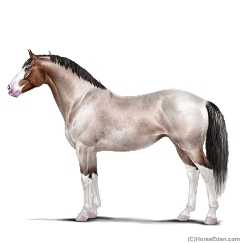 Color: Mahogany Bay Roan Splash White Sabino