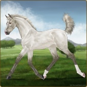 Name: Silver Tob Splash Sab ~ PPPAge: 5 Mare Color: Silver Amber Roan Dun Tobiano Splash White Sabino Breed: Irish Sport Horse Foal Rating: P/P/P |  |