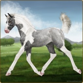 Name: ZZTaz X Skies 198Age: 2 Stallion Color: Silver Roan Grullo Tobiano Splash White Sabino Breed: Irish Sport Horse Foal Rating: S/P/P |  |