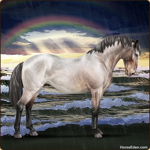so i made the one horse a narwhal who has like chains from being caught previously... But what should i make the cremello horse i have also in the art peice?