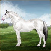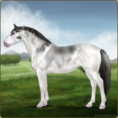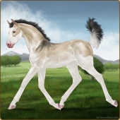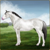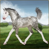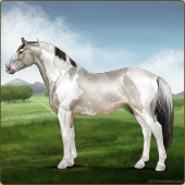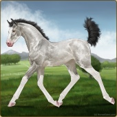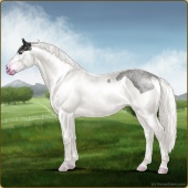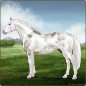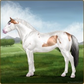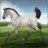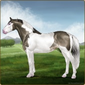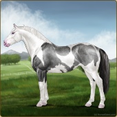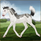 Name: Bougie Dice | PEPAge: 3 Mare Color: Silver Black Tobiano Splash White Sabino Rabicano Frost Appaloosa Breed: Irish Sport Horse Foal Rating: P/E/P |  |
