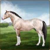 Name: 𝓡 Cory EEW 1/9Age: 11 Stallion Color: Silver Buckskin Sabino Snowflake Appaloosa Breed: Irish Sport Horse Foal Rating: E/E/W Bravery Rating: Sub-Par |  |