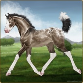 Name: μ Across EmpiresAge: 3 Stallion Color: Silver Blood Bay Splash White Sabino Blanket Appaloosa Breed: Irish Sport Horse Foal Rating: W/W/W Bravery Rating: Sub-Par |  |