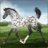 Name: ♣ Blue BloodedAge: 5 Mare Color: Silver Roan Splash White Varnish Blanket Appaloosa Breed: Irish Sport Horse Foal Rating: W/W/W |  |