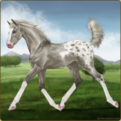 Name: ꋊꇙ AccoladeAge: 8 Gelding Color: Silver Roan Splash White Snowflake Appaloosa Breed: Irish Sport Horse Foal Rating: E/E/E Bravery Rating: Sub-Par |  |