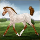 Name: Fairyflowers ee EEE #Age: 4 Mare Color: Flaxen Chestnut Varnish Appaloosa Breed: Irish Sport Horse Foal Rating: E/E/E |  |
