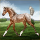 Name: ⅍ GraziosoAge: 5 Mare Color: Red Roan Dun Splash White Snowflake Appaloosa Breed: Irish Sport Horse Foal Rating: E/W/W |  |