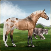 Name: Sweet Willow eeDSplLpLp EEEAge: 6 Mare Color: Flaxen Red Dun Splash White Snowflake Appaloosa Breed: Sport Horse Foal Rating: E/E/E Bravery Rating: Sub-Par |  |