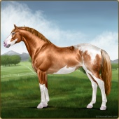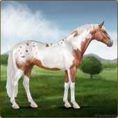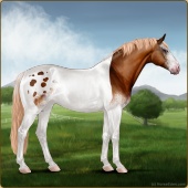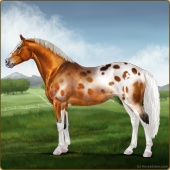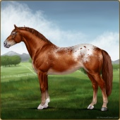 Name: Sweet X Kisuk 189Age: 13 Stallion Color: Chestnut Sabino Snowcap Appaloosa Breed: Irish Sport Horse Foal Rating: P/E/E |  |