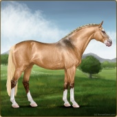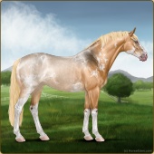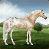 Name: Sweet X Blond 193Age: 9 Mare Color: Palomino Varnish Appaloosa Breed: Sport Horse Foal Rating: E/E/E |  |