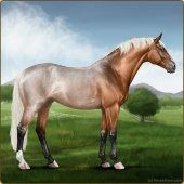 Name: Sweet X Honey 200Age: 2 Mare Color: Flaxen Red Roan Dun Varnish Snowflake Appaloosa Breed: Sport Horse Foal Rating: E/P/E |  |