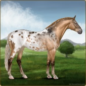 Name: ✵Sweet TreasureAge: 7 Mare Color: Red Dun Blanket Appaloosa Breed: Sport Horse Foal Rating: P/P/E |  |