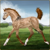 Name: {SHS} Sweet CharismaAge: 2 Mare Color: Mahogany Bay Roan Dun Blanket Appaloosa Breed: Sport Horse Foal Rating: E/W/E |  |