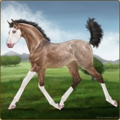Name: Sweet X Weste 200Age: 2 Mare Color: Silver Buckskin Roan Blanket Appaloosa Breed: Sport Horse Foal Rating: P/E/E |  |