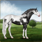 Name: Marbled NostalgiaAge: 3 Gelding Color: Black Splash White Frost Appaloosa Brindle Breed: Sport Horse Foal Rating: S/W/E Bravery Rating: Sub-Par |  |