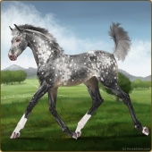 Name: Necro X 3728 198Age: 1 Filly Color: Black Varnish Appaloosa Breed: Knabstrupper Foal Rating: E/W/E |  |