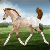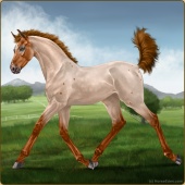 Name: ₠ Rhetoric 190Age: 9 Stallion Color: Flaxen Red Roan Blanket Appaloosa Breed: Sport Horse Foal Rating: E/W/W |  |