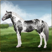 Name: ValeA X Snael 189Age: 10 Stallion Color: Silver Smokey Roan Frost Appaloosa Breed: Irish Sport Horse Foal Rating: P/E/E |  |