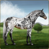 Name: Vale Double AnnaAge: 9 Mare Color: Smokey Black Sabino Varnish Appaloosa Breed: Irish Sport Horse Foal Rating: E/E/W Bravery Rating: Sub-Par |  |