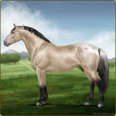 Name: SLF Horoscope EPPAge: 9 Mare Color: Buckskin Roan Splash White Blanket Appaloosa Breed: Irish Sport Horse Foal Rating: E/P/P |  |