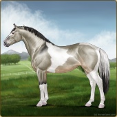 Name: Vale PEW 2103Age: 11 Mare Color: Buckskin Roan Pearl Sabino Breed: Irish Sport Horse Foal Rating: P/E/W Bravery Rating: Sub-Par |  |