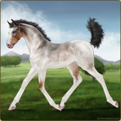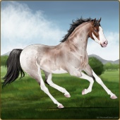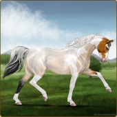 Name: *B White Sands PPPAge: 7 Gelding Color: Amber Creme Roan Pearl Tobiano Sabino Breed: Thoroughbred Foal Rating: P/P/P Bravery Rating: Sub-Par |  |