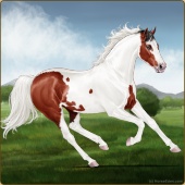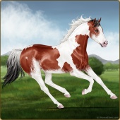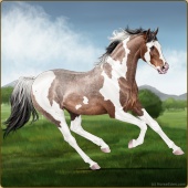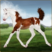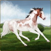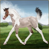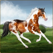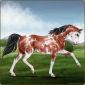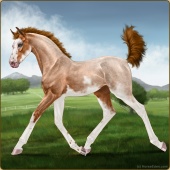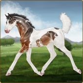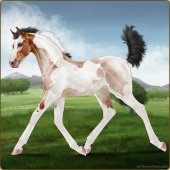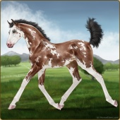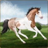 Name: L EvermoreAge: 3 Stallion Color: Light Bay Tobiano Sabino Frame Breed: Thoroughbred Foal Rating: E/E/E |  |