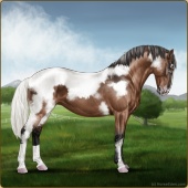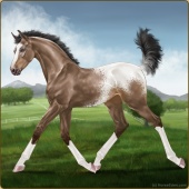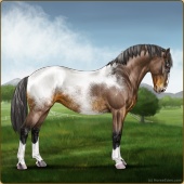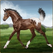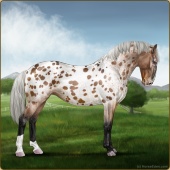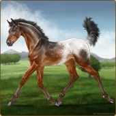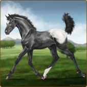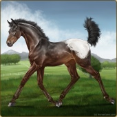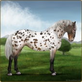 Name: (~d) InvertedAge: 9 Stallion Color: Seal Brown Varnish Snowflake Appaloosa Breed: Irish Sport Horse Foal Rating: W/S/A |  |