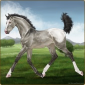 Name: 🤍 PeppaAge: 7 Mare Color: Grullo Frame Frost Appaloosa Breed: Irish Sport Horse Foal Rating: W/Sub/Sub |  |