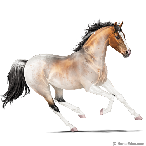 Color: Copper Bay Roan Dun Tobiano Rabicano