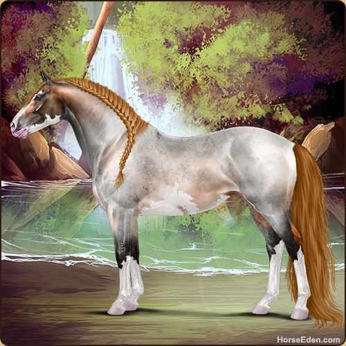 | I've never bred for colours before but accidentally bid on rare-ish mare the other day, and decided to have some fun and somehow ended up with a 1/1 on my first try XD -HEE Click- Anyone have name suggestions? |