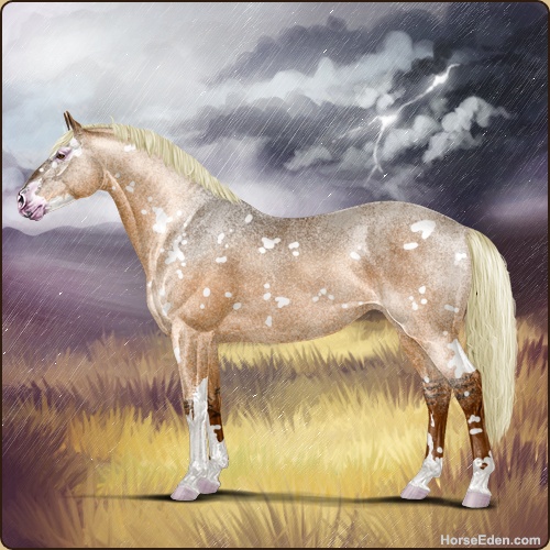 Color: Flaxen Red Dun Sabino Varnish Appaloosa