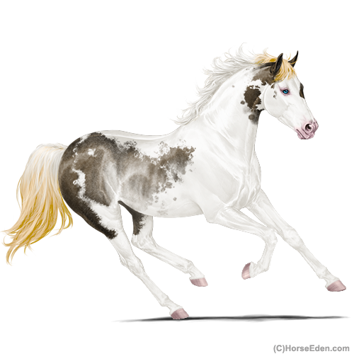 Color: Dark Flaxen Liver Chestnut Tobiano Sabino Rabicano Frame