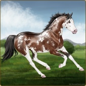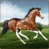 Name: Pure IntentionAge: 16 Stallion Color: Mahogany Bay Tobiano Sabino Breed: Thoroughbred Foal Rating: P/P/P |  |