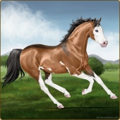 Name: ⭐Dawn Magic (EEE)Age: 10 Stallion Color: Buckskin Tobiano Sabino Breed: Thoroughbred Foal Rating: E/E/E For Breeding! |  |