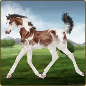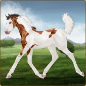Name: Magic Mint (PPP)Age: 0 Mare Color: Mahogany Bay Tobiano Sabino Breed: Thoroughbred Foal Rating: P/P/P |  |
