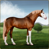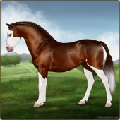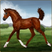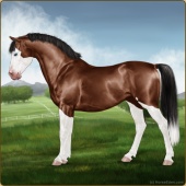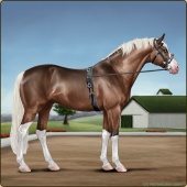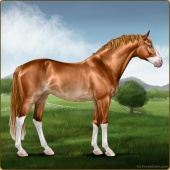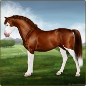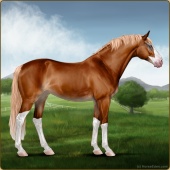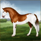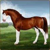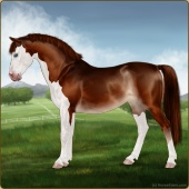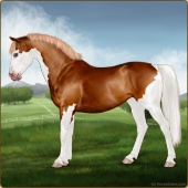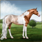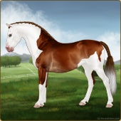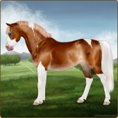 Name: Wings MiracleAge: 3 Mare Color: Chestnut Splash White Breed: Sport Pony Foal Rating: E/W/E |  |