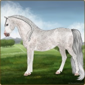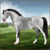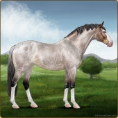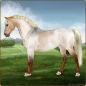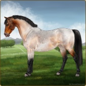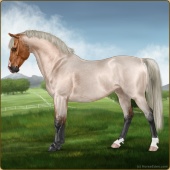 Name: Mirac X Krato 188Age: 14 Mare Color: Silver Light Bay Roan Breed: Sport Pony Foal Rating: E/E/E For Breeding! |  |