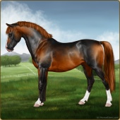 Name: Mirac X White 200Age: 2 Mare Color: Blood Bay Splash White Breed: Sport Pony Foal Rating: E/W/E |  |