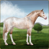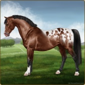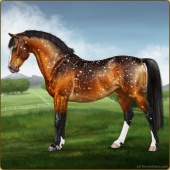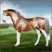Name: Mirac X Golde 198Age: 4 Stallion Color: Light Bay Splash White Snowflake Appaloosa Breed: Sport Pony Foal Rating: E/W/E |  |