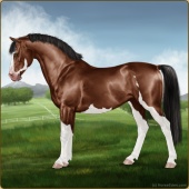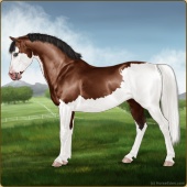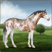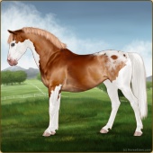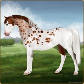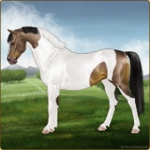 Name: Mirac X Golde 191Age: 11 Stallion Color: Brown Splash White Blanket Appaloosa Breed: Sport Pony Foal Rating: E/W/W |  |