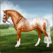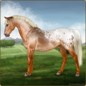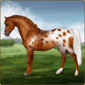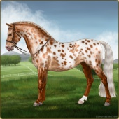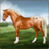 Name: LpLp Apollo GHCAge: 4 Stallion Color: Flaxen Chestnut Blanket Appaloosa Breed: Sport Pony Foal Rating: E/W/W Bravery Rating: Sub-Par For Breeding! |  |